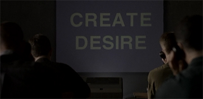 Indeed, Gehenna is very much a post-Cold War story. It is set in a world where totalitarian communism has collapsed as a credible threat to the United States. Instead, the cult weds totalitarian iconography with hyper-aggressive nineties telemarketing. The rows and rows of cult members dialing telephones looks like something from an eighties film set in dictatorship somewhere. The screen at the top of the room reinforces the message, but it is not one of unquestioning obedience or unwavering loyalty. It is materialism. “Everybody wants beautiful hair.”