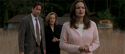 There are a few similar moments in The Field Where I Died. One of the great ironies about Mulder is his willingness to trust blindly. After all, “I want to believe” stands at odds with “trust no one.” Mulder has been repeatedly and thoroughly manipulated and betrayed because of his willingness to trust and accept what other people tell him. Morgan and Wong wrote Mulder that way in E.B.E., but it also happened in Ascension and Colony. However, even with that precedent in mind, Mulder seems too eager and too willing to trust Melissa’s visions immediately.
