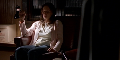 However, Mulder doesn’t actually believe any of that. The moment that Skinner leaves the room, Scully calls him on it. “You didn’t even have the courage to tell Skinner what you really believe,” Scully berates him. “That Melissa Riedal is being invaded by her past-life incarnations.” Mulder concedes the point. “Because he wouldn’t believe me,” he admits. It is a weird scene, because it plays against one of the core aspects of Mulder’s personality. Mulder is a character who believes – or who wants to believe – absolutely and uncompromisingly.