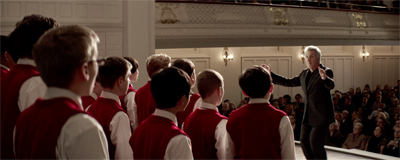 However, this being the movie that it is, Carvelle eventually and gradually softens on Stet. It isn’t that his cold exterior masks deep reserves of compassion and kindness; instead, Carvelle is completely and unreservedly won over by the final credits. There is no room for ambiguity or nuance. That is precisely the sort of movie that Boychoir is. It is a film that is incredibly blunt in what it wants to be and how it wants to be about it, and that includes forsaking any hint of subtlety or shading.