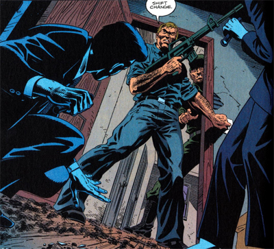Still, Surrounded is notable for the introduction of Alex Saviuk, the new penciller. Gordon Purcell had been poached to work on the high-profile Ground Zero comic strip, and Ten Thirteen were not entirely happy with Charles Adlard’s more atmospheric style. Saviuk was an industry veteran – he had been working steadily since the late seventies. He had done high-profile work at both Marvel and DC. More than that, he was something of a work-horse. At the same time as doing a year-long run on The X-Files, he was illustrating The Amazing Spider-Man newspaper strip.