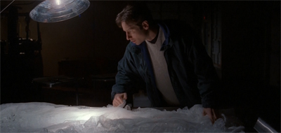 This concern with fictionality and reality helps to mark Gethsemane as quite reflexive and postmodern. As with several other points in the fourth season, the influence of Darin Morgan can be keenly felt on Gethsemane. Kritschgau’s story in Gethsemane seems quite close to the possibility suggested in Jose Chung’s “From Outer Space”, that aliens are just convenient scapegoats for an out-of-control military industrial complex. The late third-season episode has a considerable influence on the Redux trilogy as a whole.
