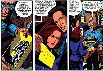 Filed under: The X-Files | Tagged: cropduster, gremlins, john rozum, little green men, mulder, scully, the x-files, Topps |