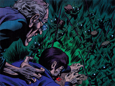 There are a lot of interesting directions in which the story might move. The little green men could be a metaphor for that unspoken trauma. The X-Files is frequently a show about the death of quirky and eccentric spaces in America, and Crop Duster treats its monster as a stand-in for damage done to an otherwise idyllic rural community. There is a great story to be told here, and Crop Duster hints at taking some big X-Files ideas and pushing them in a clever and resonant direction.
