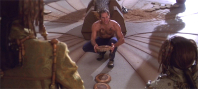 But long before T’Pol mentioned it, I was screaming at Archer that he was an idiot for taking his DOG on a delicate diplomatic mission. And not just any mission, a mission to a people who had already shown themselves uncomfortable with the more animalistic aspects of mammalian life, as shown by their objecting to witnessing the act of eating. Taking his dog on a mission to such people was a truly boneheaded maneuver. Archer continues to act as if he’s on a personal sightseeing tour of the galaxy, and he just happens to have a Starfleet ship and crew along for the ride.