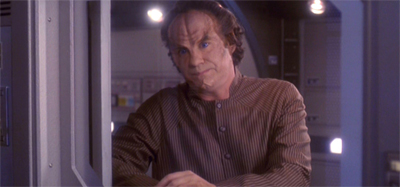 The production design on Weytahn is starting to look quite familiar. It calls to mind the dive bar setting of The Seventh, the ruins of Shockwave, Part II, the failed world of Shadows of P’Jem. During the eighties and nineties, the alien worlds of Star Trek have generally been quite peaceful and tranquil. Even the troubled colonies in Journey’s End or The Maquis looked like paradise. A little repair work might be required to help the communities featured in The Storyteller or Preemptive Strike, but they were still places where people could live.