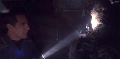 If Future Tense casts T’Pol in the thankless role of Scully, it positions Archer in the role most often associated with Mulder. Archer is the headstrong character rushing into danger in pursuit of answers. With the same frustration that drove Mulder, he laments, “This is the first chance we’ve had to get some answers.” Indeed, Future Tense has all the fun of early X-Files mythology runarounds like Fallen Angel or E.B.E. It feels like the sort of loose thriller that The X-Files would throw together before the central conspiracy storyline took shape with The Erlenmeyer Flask at the end of the first season.