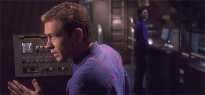 There is something just a tad reactionary about all this. The choice of Reed as the vehicle for this particular entity is certainly intriguing; Reed was rumoured to be the franchise’s first openly gay character in the run-up to the show’s broadcast, and his sexuality has been the subject of much discussion and speculation despite the writing staff’s best efforts to assert his heterosexuality in episodes like Broken Bow or Shuttlepod One. Having an obviously evil alien take his body without consent (after he tries to fight it off) and use that body to threaten female crew members while raising issues of gender feels pointed.