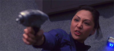 It is hard to determine a consistent ideology to account for Enterprise‘s approach to the War on Terror. There are scripts that seem cynical about the more vocal responses to the terrorist attacks of 9/11. Episodes like Detained and Judgment seem uncomfortable with the reflexive paranoia and hate-mongering provoked by the atrocity. Shadows of P’Jem suggests that violence begets violence; Cease Fire proposes that a peaceful response to violence can be a radical move. These are episodes that fit (reasonably comfortably) within the stereotypically liberal framework of Star Trek.