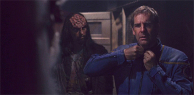 A large part of what makes this episode so good is decent dialogue that often comes off as quite believable. The acting skills of J.G. Hertzler seem to rub off on Bakula in their scenes. These dialogue scenes are interesting and harken back to better moments on prior Trek shows that are often cult-favourites. The easy temptation of packing Star Trek episodes with action scenes, combat, and last-minute suspense is just not something that should be done as often as it is on Enterprise. This was a nice episode, despite the fact that they really should be staying away from the Klingons. It was also a nice commentary on the dangers of nationalism through a sort of neo-samurai class dominance.