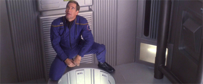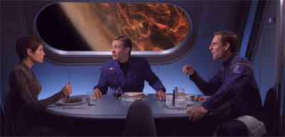 Once Horizon actually starts moving, it devotes considerable time to a subplot about T’Pol and “movie night.” The show keeps cutting away from life on the Horizon and back to our regulars staring at a pretty special effect as they try to bully T’Pol into doing something that she does not want to do. It is interesting to wonder why these choices were made. Were the production team worried about giving the cast two light weeks in a row, with Archer carrying most of Judgment and Mayweather carrying most of Horizon? Or did they not trust Anthony Montegomery?