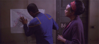Montgomery’s complaints are perfectly understandable and legitimate. Mayweather has been largely ignored, to the point where Harry Kim felt more fleshed-out by this point in the run of Star Trek: Voyager. An episode centred on Mayweather is long overdue, and a decision to focus on his family makes sense.