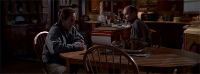 The Beginning and the End also affords Peter Watts his first true characterisation. There were shades of character to be found in episodes like Force Majeure and Walkabout, but The Beginning and the End gives Peter a thoughtful and profound conversation with Frank about his history and his motivations. It is a haunting story that clearly sets up Peter’s arc for the year ahead. It also gives Terry Quinn something into which he can sink his teeth. It is another example of the many delightful (and less overt) shifts in the mood and direction of Millennium.
