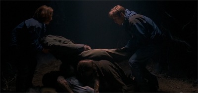 In fact, the predators in Detour turn out to be fairly non-lethal. Despite their aggressive response to the intrusion into their territory, it seems like Mulder and Scully are able to save a significant portion of the victims. When Mulder and Scully stumble across the predators’ lair, they find the most of the victims still alive. As such, it seems like Detour is making a conscious effort to play down the threat posed by these creatures. Their victims could have died, but it seems that most of them survived. (In contrast, two-thirds of the predators are killed.)