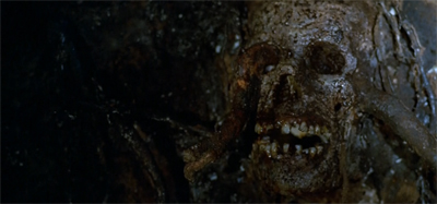 There are larger problems with the script, as evidenced by the fact that the climax is resolved by contrivance. Ramirez, a local woodsman who seems to do nothing but wander around the orchard at all hours of the day and night carrying his trusty axe, walks into the scene to kill Karen before wandering off again. “It’s done now,” he quotes from the big book of gothic clichés. “No more.” The audience thank him for his service. It is a rather inelegant solution to a climax that is already absurd – Mulder is literally stuck in the mud.