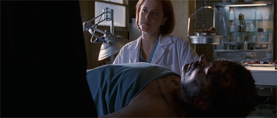 The problems with the script are both macro and micro – the story is populated with large and small choices that seem ill-advised and ill-conceived. To pick one small example, it seems very weird to have Mulder visit the pathologist while Scully conducts an interrogation; their roles would work better reversed. It is a simple mistake, but one that points to larger misunderstandings about how The X-Files works best. A flawed episode can generally coast on strength of the chemistry between the leads (cf: the sixth season), but Schizogeny seems to lack a basic understanding of the show’s dynamics.