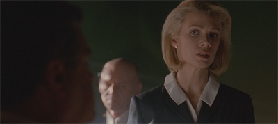 Most pointedly, Spender interacts more with Scully than with Mulder – despite the fact that he is consciously set up as a counterpart for Mulder. His introduction to Scully foreshadows the introduction of Doggett during the show’s eighth season – Scully has found herself transitioned into the role of believer, with a new male agent playing the role of sceptic. Spender addresses Scully in a way that makes it clear that he is younger and more inexperienced than she is – suggesting her assignment to the X-files straight out of the Academy.