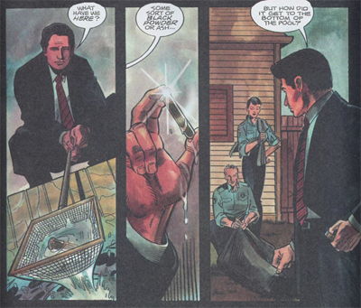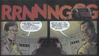 Still, the death of Nancy Scheck is much more effective than the cliffhanger to the first issue. The first issue actually has a pretty horrific sequence only a couple of pages from the end of the comic – two army officers buried in a nuclear silo are attacked after the phone rings. It is a moment that demonstrates just how powerful this primal force might be, and just what the stakes are. However, the first issue does not close on this image. Instead, it closes on an already sleazy government scientist complaining, “I’m just anxious to get away from these FBI investigators.”
