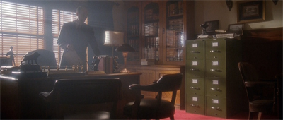 The bulk of the script unfold in the fifties, with Agent Arthur Dales investigating a suspected communist on a killing spree. However, these sequences are narrated by an older version of Arthur Dales who is relating the story to a young Fox Mulder. It is a little convoluted, but go with it. This is an excuse for Spotnitz and Shiban to write hardboiled narration to be delivered by Darren McGavin. In theory, this is a great idea; everybody likes nostalgic throwbacks, and Travelers was broadcast half a year after L.A. Confidential had revitalised interest in fifties noir.