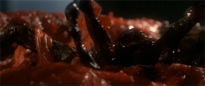 At the same time, there are decidedly uncomfortable sexual undertones to Edward Skur’s violent impulses. In all three cases where we see Skur attack his victims, he forces them to the ground and positions himself over them. His eyes roll back in his head and his mouth opens wide as his attacks reach a climax. We only see the entity inside Skur feed once, but it is telling that the creature does not bite or claw at its victim. Instead, the episode offers us a variation on the invasive oral attack associated with the facehugger.