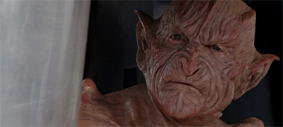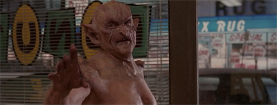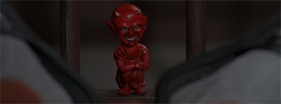 Blurk simply suggests that his victim should become a serial killer, and he does. Greb appears to his victim as a demonic dancing baby, but he simply parrots back a line that the character uttered moments earlier. The other demons seem started at how little Abum actually does. “I don’t do squat anymore,” he boasts. “They do it all for you.” he explains, “Mankind has progressed to a point in its dim-witted history where life has been drained of all of its enchantment.”