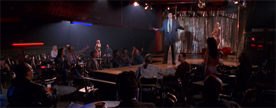 The censorship segment also provides a nice framework for all sorts of sly self-aware gags. The idea of the censor having a nervous breakdown at a strip club is a fairly solid idea, but the execution is ingenious. The camera actually starts censoring various potentially naughty parts of the stripper. At another point, the lunatic censor directly addresses the camera, with Morgan cutting the episode so that the audience is staring at him through that same camera. When he asks a question, the camera nods in response.