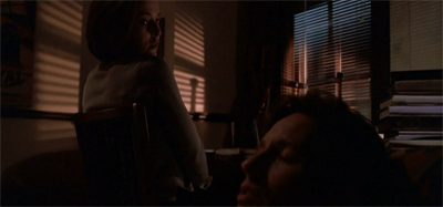 This was a clever resolution to the Gethsemane cliffhanger, but not necessarily the best policy for managing a sprawling story. Diana Fowley is very much the personification of this approach. She is a piece of story that did not exist until she was needed, a seemingly vital part of Mulder’s back story conjured out of thin air. There is no foreshadowing of her arrival, not necessity for her presence. She serves no larger story purpose, to the point where the show quickly runs out of ideas about what to do with her.