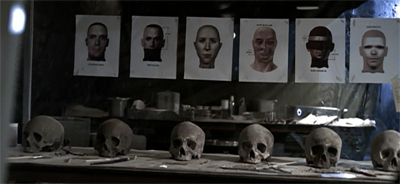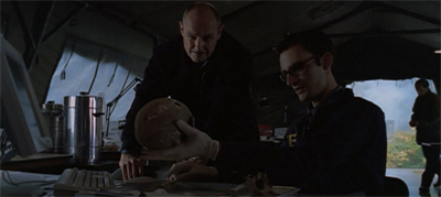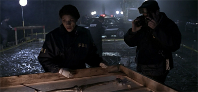 Skull and Bones contains a nice connection back to Johannessen’s earlier script for the season, Exegesis. The logo used in the “remote viewing” experiments appears as graffiti on a wall at a demolished crime scene. Johannessen would make eyes a recurring motif in the third season. The “remote viewers” in Exegesis were targeted for what they had seen. Here, Ed was driven insane by the fact that he witnessed a murder. Perception is a vital and recurring theme in Johannessen’s work, and one of the threads that comes up repeatedly over the third season.