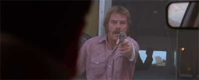 However, Drive brutally subverts this romantic ideal of California. California is not a place of limitless opportunity for Mulder and Crump. It literally represents the end of the road for their joint adventure. The sign welcoming the duo to California is met with dread. “We’ll figure this out,” Mulder promises his desperate passenger. As he catches a glimpse of the sign ahead, Crump simply replies, “You’d better figure quick. We’re running out of west.” It is a powerful image.
