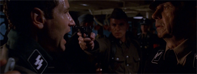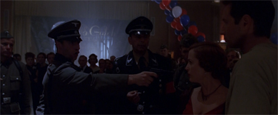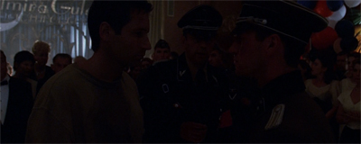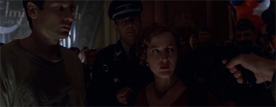 Similarly, 1939!Spender is revealed to be a mouthpiece for 1939!Cigarette-Smoking Man, charged with getting vital information from Mulder. This would appear to be a universal constant. Answering the phone in the basement, 1998!Scully discovers that 1998!Cigarette-Smoking Man is counting on 1998!Spender to get vital information from her. As if to underscore the similarities, both 1998!Scully and 1939!Scully describe their version of Spender as a “weasel.” It just happens that 1939!Spender actually wears a Gestapo uniform.