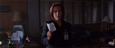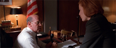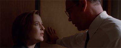 After all, one of the most impressive pieces of Triangle is the sequence where Scully runs through the FBI looking for the macguffin. It is a completely unnecessary sequence. It is never entirely clear why Scully needs that piece of information, beyond the fact that there needs to be a reason for her to run around the building. The script could very easily just have another character give her that information, or cut to her giving that information to the Lone Gunmen. Instead, Triangle turns it into a high energy run-around through the FBI building.