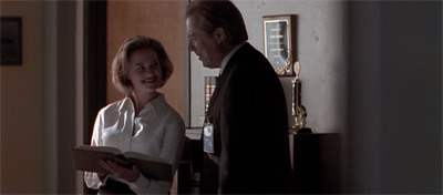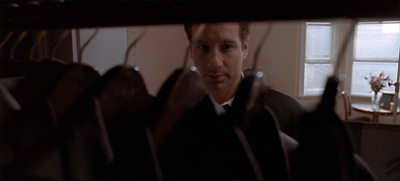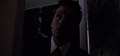 Explaining why he went along with the body swap, Morris!Mulder offers Scully a horror story that is probably closer to the experience of the viewer than that of either Mulder or Scully. “Do you think I want to go back to that?” he asks. “Two kids who’d probably kill me in my sleep for the insurance money. A $400,000 mortgage on a house that just appraised at $226,000. And my job… yee-gods! You think being a man in black is all voodoo mind control? I can see the paperwork.”