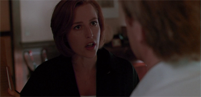 When Mulder!Morris tries to convince Scully that he is really her partner, he rattles off all sorts of personal information – from her middle-name to her mother’s name to her current lunch routine. Scully responds by pointing out all of this information could have been ascertained by a third party. It’s not unreasonable, given that Gethsemane featured the government growing an alien body to discredit Mulder. However, Mulder!Morris responds sarcastically, “That is so you. That is so Scully. Well, it’s good to know you haven’t changed. That’s somewhat comforting.”