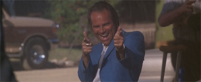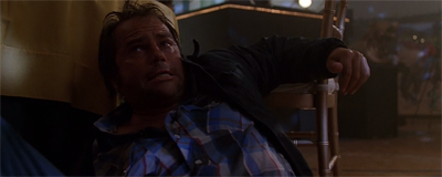 However, veteran character actor Clayton Rohmer is cast in the role. Rohmer is a very stylised performer, one with a very theatrical approach to the craft. It is precisely the sort of knowing and arch performance that one might expect from William Shatner, one that draws attention to absurdity of the construct around it. It is a style that does not necessarily work in every situation, but it gels quite perfectly with the story around it. Rohmer is perfect cast as the dim-witted self-aggrandising huckster.