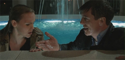 This sense of cynicism is compounded by the fact that Danes is introduced in the most clichéd manner possible – he’s doing everything but cackling and hissing at the camera. Indeed, Bill Pullman makes sure that the court footage of Danes features lots of sneering and posturing from Danes. We’re told that Danes is so evil that even “the planned protests against the death penalty haven’t appeared, which isn’t surprising considering the nature of the offense.” A reporter talks about Danes’ “infamous line of defense” for his crime, “She should have run faster.”