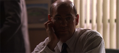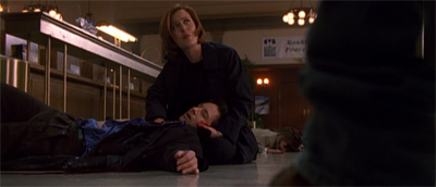 “Don’t you see?” Pam asks Mulder. “We’re all in hell. I’m the only one who knows it.” Pam experiences this particular hell every day, but it seems like Bernard is eager to escape his own everyday hell. This sense of a work-related horror story is even reflected in the choice of words that resonate with Bernard. During the botched robbery, Mulder reassures him, “You’re the boss.” Bernard seems oddly reassured by this, repeating, “I’m the boss.” He does not repeat Scully’s assurance that he is “in control”, for example.
