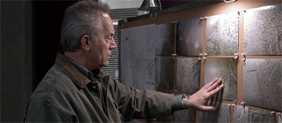 Nevertheless, Darwin’s Eye has a lot of interesting and compelling elements. In fact, Darwin’s Eye is touching upon and expanding familiar Millennium themes. In particular, it is an episode absolutely fascinated with the idea of imposing order upon chaos. In Sense and Antisense, writer Chip Johannessen had suggested that conspiracy theory was simply a way of processing seemingly contradictory stimuli into a cohesive narrative. In Closure, the show suggested that Emma Hollis was driven by a desperate desire to find reasons behind seemingly random acts.