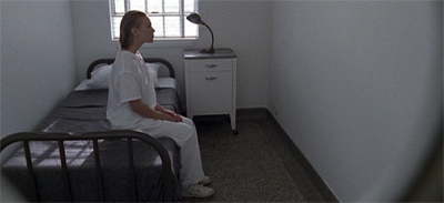 Instead, Darwin’s Eye casts Cass the embodiment of that most archetypal female horror villain – the sexually aggressive castrating monster. She is a woman who uses her body to manipulate hapless male characters to their doom, taking advantage of them sexually before metaphorically castrating them. Cass’ murder of Joe is meticulously and carefully planned; in contrast, the more justified and reactive murders of her father and the voyeuristic orderly which take place off-screen. As a result, Cass seems downright predatory.