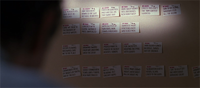 Milagro is, to my mind, an underappreciated episode. That’s why it’s there. It’s also, for us, somewhat autobiographical. By season six of the show, we had spent so many hours thinking about Mulder and Scully and fascinated by them and every aspect of who they were, that we could identify with the writer character, Milagro. And it’s really about the power of writing, and the power of fiction. In this episode a fictitious character actually becomes real and is capable of operating in the world. It’s about how what you write reflects who you are. It’s so personal, in fact, that the cards that are on the writer’s wall are the same format that we wrote The X-Files in. We would use those same cards when figuring out stories for the series. And those cards are in my handwriting because the prop guy couldn’t do it as well as we could because that’s really the way we did it. It’s a very emotional love story and it’s really about our love for these characters as writers.