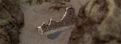 Each of the three parts of the story are bookended by shots on the beach, lending the three-parter a strange and almost poetic quality. Biogenesis opens with the alien artifact washing up and closes with the discovery of the ship. The Sixth Extinction opens with Scully working on the same beach and closes with the disappearance of the ship. The Sixth Extinction II: Amor Fati opens with Mulder sitting on a beach watching a child and closes with Mulder opting to build a sandcastle model of the alien ship with the boy.