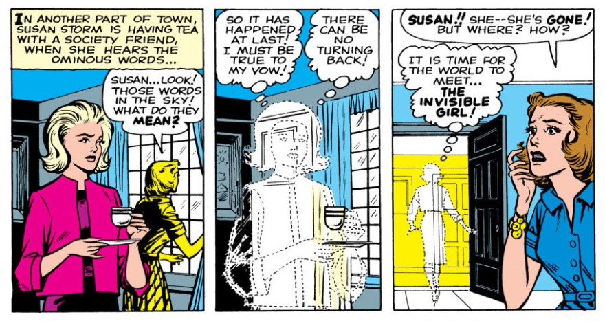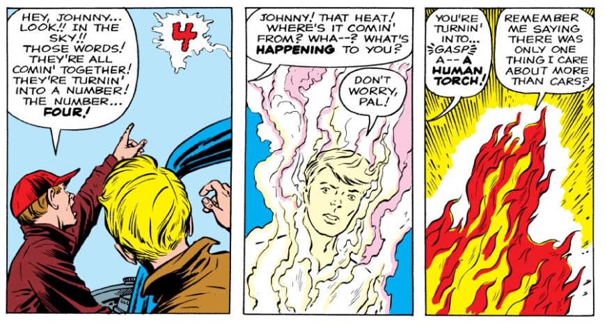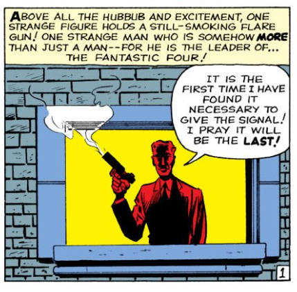 (It also plays as something of a short and understated homage to the source material. In keeping with the idea that Fantastic Four #1 founded Marvel universe, the title characters début in a manner more appropriate to a horror story than a superhero origin. There is something decidedly uncanny about the way that Lee and Kirby introduce Reed, Susan, Johnny and Ben to the audience, emphasising the creepiness of their powers and the uncomfortable reactions of those who happen to be standing nearby.)