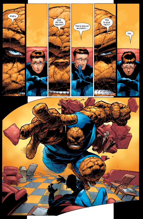 (Quite a lot of the smaller story choices in the film can be traced back to the first arc of Ultimate Fantastic Four: the design of Reed’s teleportation device, the use of teleportation as a plot device, the inclusion of Doctor Doom in that initial experiment, even Ben’s first real conversation with Reed following their transformation. That said, there is a reason that Ultimate Fantastic Four never spawned the same level of interest and sequels asthe other contemporary modernisations of core Marvel properties.)