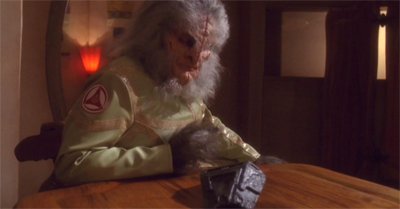 The fact that Gralik is implied to be correct here (and shown to be correct over the course of the third season) somewhat undermines the central point of The Shipment. Archer seems to learn that not all Xindi are complicit in the attacks upon mankind, but also seems to learn that reptile!Xindi are the ones that you have to watch out for. The Xindi delegation arriving on the colony consists of Degra and a bunch of reptile!Xindi. Over the course of the season, Archer learns to reason with Degra. However, the reptile!Xindi remain villainous.
