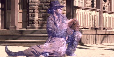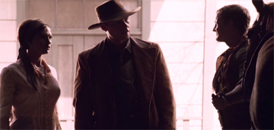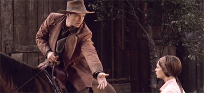 The premise is so audacious that it seems almost unfair to pick at it. It seems a coincidence that these humans abducted and carried half-way across the galaxy (or the quadrant) should conveniently happen to have the resources and materials necessary to construct a perfect replica of a classic western town, with not a brick out of place and not an anachronism in sight. Not only were they about to fashion the tools to build houses, but also to make clothes and tools and weapons. They even have old-timey photography and shot glasses!