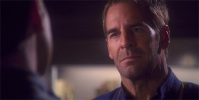 Quite simply, Archer’s conscience doesn’t seem to have a throttle at this point in the season. There is no sense that Archer’s desperation is growing over the course of his time in the Expanse, no clear erosion of his values. Archer’s willingness to compromise his morality fluctuates wildly from episode to episode. There is no clear sense that Enterprise has established a Rubicon for Archer to cross; the character seems to alternate between a relentless no-nonsense man-on-a-mission and a boy scout struggling with a radically changed status quo.