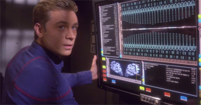 Similarly, Connor Trinneer has an engaging charm and innocence that makes him the perfect fit for a story like Cogenitor or Similitude, seeming both grounded and vulnerable, accessible and introspective. Trinneer had demonstrated that charm as early as Unexpected, managing to wring some small measure of humanity out of a thankless script. Similitude would not work with Scott Bakula or Dominic Keating or Anthony Montgomery or John Billingsley. Trinneer’s talent for making Trip a particularly sympathetic character probably contributed to the decision about the character’s fate in These Are the Voyages…