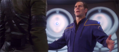 Sure, Shran sends on the plans for the weapons at the end of the episode and returns in Zero Hour, but it feels more like an imitation of long-form storytelling than an example of it. Imagine having Shran counselling Archer in an episode like Impulse or The Shipment. With T’Pol serving as the voice of reason, Shran would make a convincing advocate for force. Scenes of Archer, Shran and T’Pol in the new operations centre practically write themselves, casting Shran in a role roughly analoguous to that of Martok on Star Trek: Deep Space Nine.