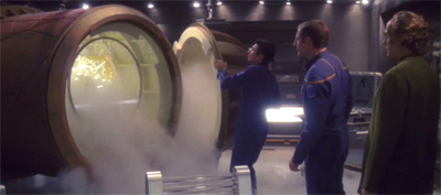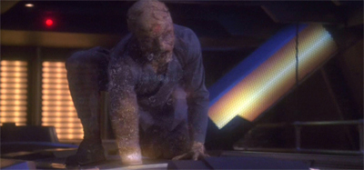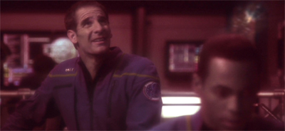It seems quite clear that Harbinger is not revelling in the long-delayed knock-down fist-fight between the two characters where Reed can final prove his own worth to both himself and to Major Hayes. Instead, Harbinger builds to a climax where Reed and Hayes must put their differences aside in order to save the ship from a very grave threat. It is the quintessential conclusion to a Star Trek episode, even if the route that the episode takes to reach that point is somewhat unconventional.