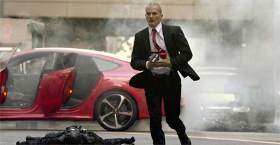 (Indeed, it is fun to imagine Hitman: Agent 47 as a video game. An early “level” uses strobe lighting to crew effect; various sequences where the characters get out of tight situations look like they should have “press the ‘x’ button” appearing in the corner of the screen. There is a car chase; much is made of setting traps and exploiting the environment. One sequence in the middle of Singapore finds the heroes assailed on all sides by waves of enemies, looking like the perfect closed-off “time trial” or “challenge” level.)