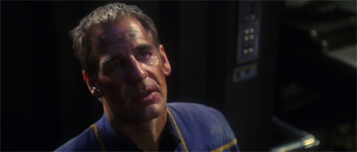 To be fair, there are some problems here. Damage does not work quite as well as In the Pale Moonlight did, for a number of reasons. The most obvious is that a trick is never as effective as it is the first time that the audience sees it. Other than that, Damage is not structured as a performance piece for Scott Bakula in the same way that In the Pale Moonlight was for Avery Brooks and Andrew Robinson. However, the biggest problem is that Damage lacks the singular focus that powered In the Pale Moonlight.